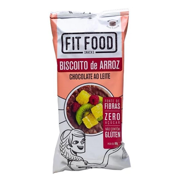 biscoito de arroz c/ chocolate ao leite s/ gluten e acucar 60g fit food