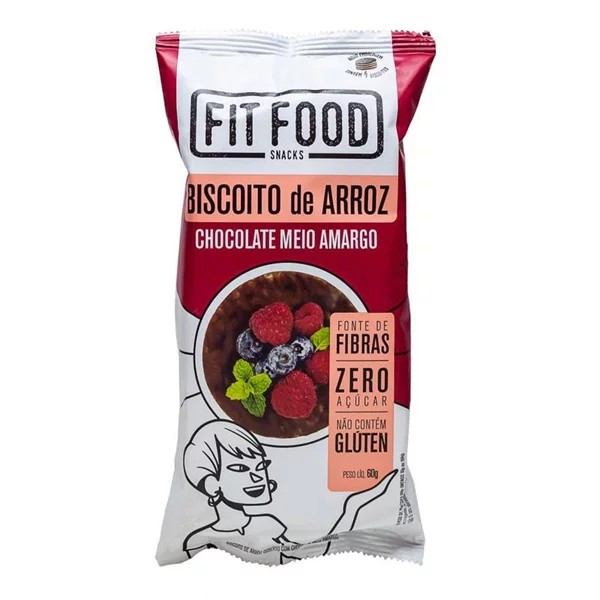 biscoito de arroz c/ chocolate meio amargo s/ gluten e acucar 60g fit food