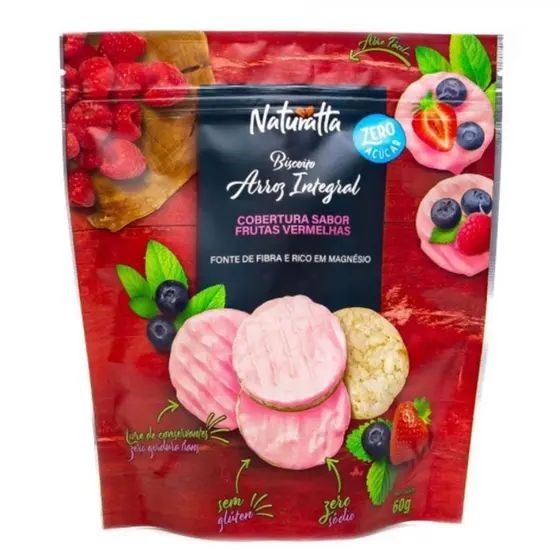 biscoito de arroz integral com cobertura sabor frutas vermelhas zero acucar 60g